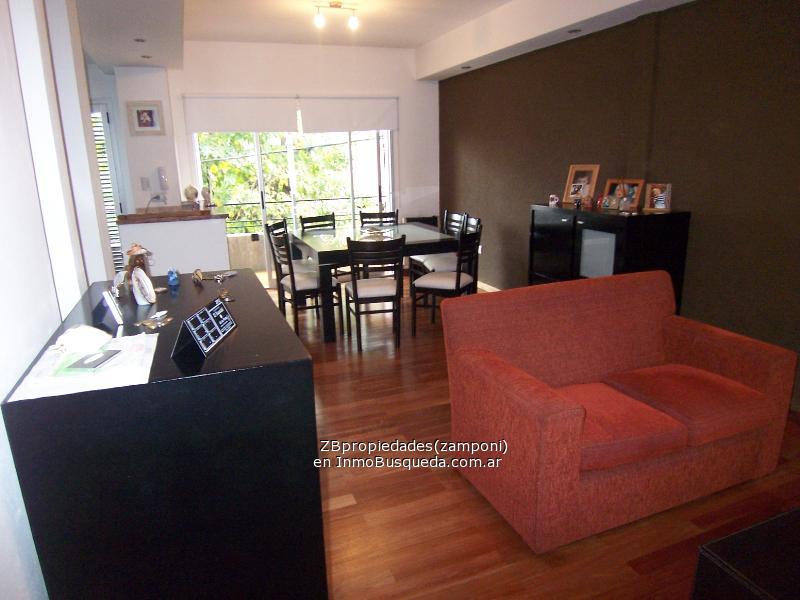MONICA BIANCHINI BIENES RAICES Excelente semipiso de 2 dormitorios, con cochera, amplísimo living con balcón al frente con deck, cocina con doble bajo mesada enfrentados y en madera maciza, lavadero cubierto, aberturas en aluminio línea módena, baño completo con bañadera, tiene dos bauleras enormes, una en la cochera y otra en el piso. La cochera es semicubierta para un auto. Apto crédito. 1er piso por escalera.
